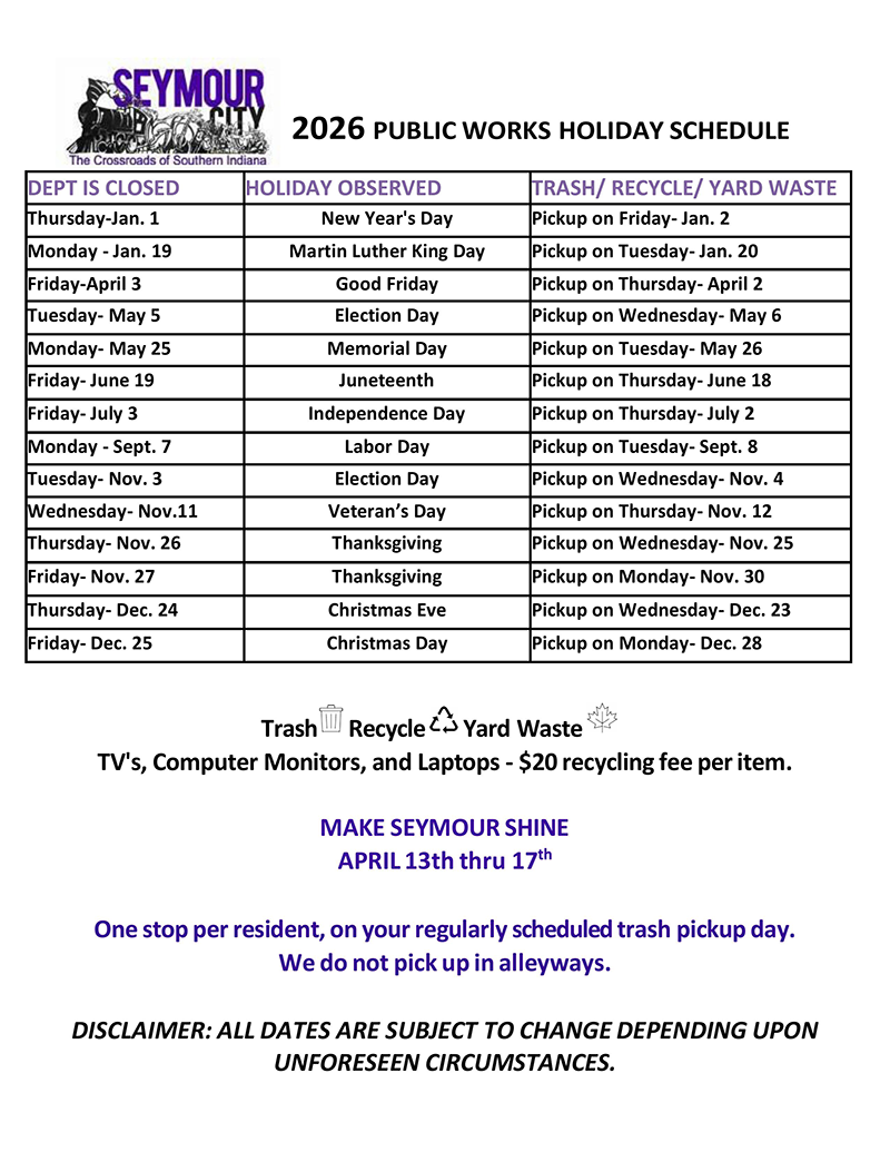 Seymour is a thriving industrial, commercial, and residential community based on well-planned growth and progress. The quality of life is demonstrated by Seymour’s “small town” yet bustling atmosphere, beautiful parks and open spaces, attractive landscaping and arterial streets, a low crime rate, quality schools and affordable housing. Because of the geographic location, a pro-business environment, and a proactive local government — Seymour is expected to continue to grow.